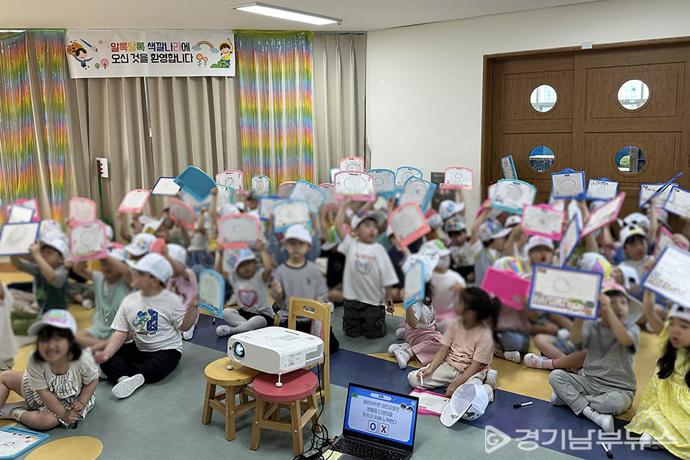 하랑학년 원아들은 5월 한 달 동안 멸종위기 동식물의 종류를 알아보고, 이를 보호하기 위한 방법을 함께 고민하며 실천하는 시간을 가졌다. 특히 골든벨 퀴즈 문제는 유아들의 관심 주제를 반영해 구성되었고, 원아들이 직접 만든 캡모자와 이름표를 착용해 더욱 즐거운 분위기 속에서 행사가 진행됐다.