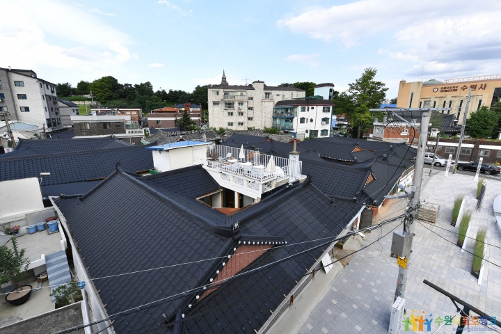 수원시는 오래된 주택이 밀집해 있던 수원화성 성곽 주변 마을인 남수동의 15가구 지붕을 한옥지붕으로 개량하는 공사를 2일 완료했다.