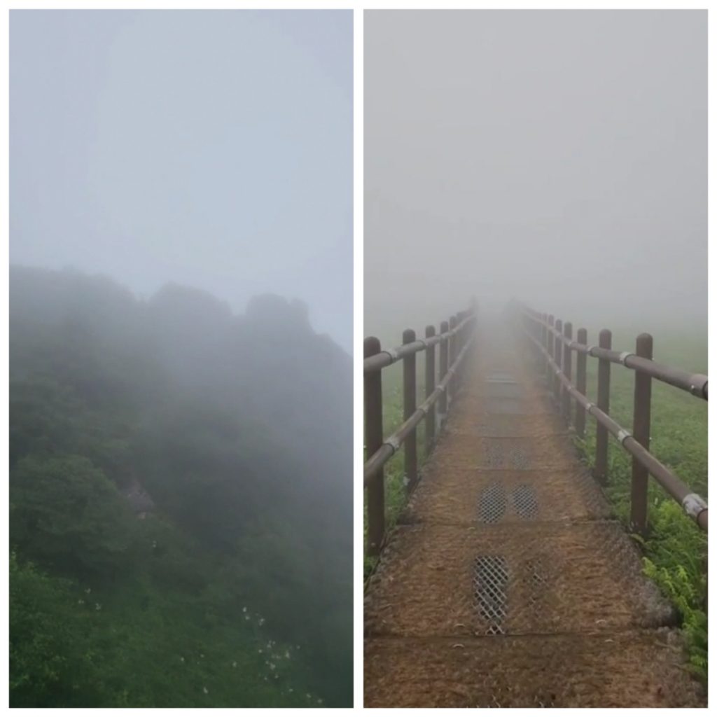 그렇게 걷다 보니 전나무 군락지에 도착했다. 그러나 그 순간부터 짙은 안개가 주변을 가득 메우며 시야를 거의 앗아갔다. 안개의 장막 너머로는 아무것도 보이지 않았고, 길조차 희미하게 가늠할 수 있을 정도였다. 마치 또 다른 세계에 들어선 듯한 기묘한 정적이 감돌았다.