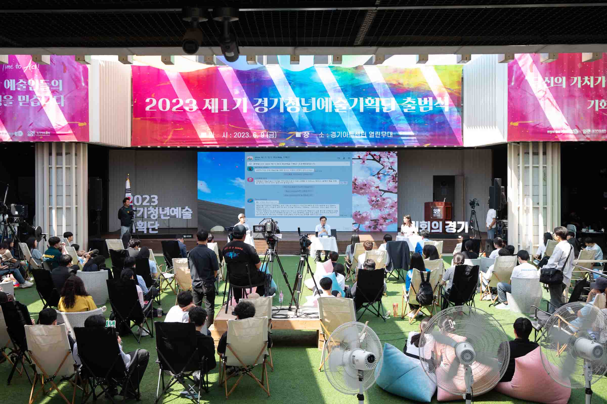 이날 출범식에서는 60여명의 청년 예술인, 대학생 등이 참석해 경기 청년예술기획단의 시작과 다짐을 알리는 '청년 예술 기회 선언문'을 낭독하고, 실시간 공개 오픈 채팅방을 활용해 김동연 지사와 경기도 청년 예술 정책에 대해 자유로운 대화를 나눴다.
