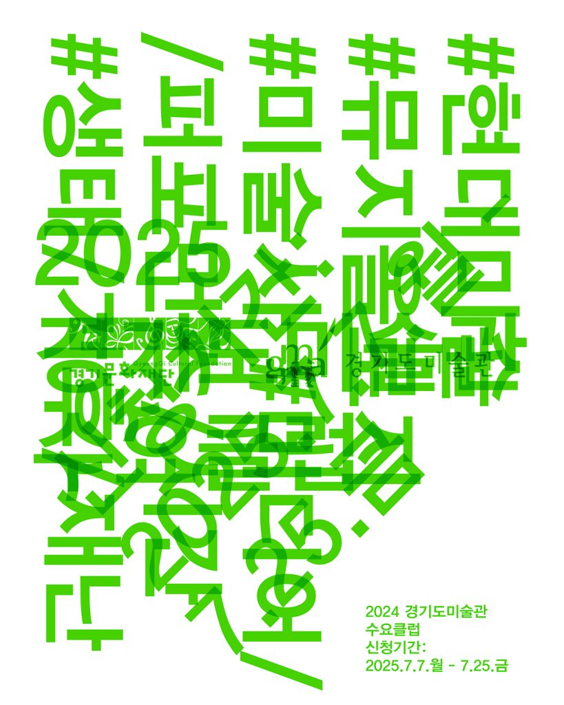 안산에 위치한 경기문화재단 경기도미술관은 오는 13일부터 9월 10일까지 ‘2025년 수요클럽’ 강좌를 총 5회에 걸쳐 무료로 진행한다. ‘수요클럽’은 매주 수요일 진행 하는 대중 학술 강좌로, 현대미술에 관심 있는 누구나 참여할 수 있다.