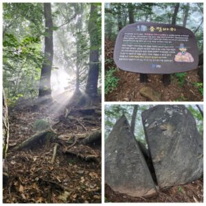 제5구간의 돌무더기가 있는 곳에 오르기 전 아침햇살이 비추는데 너무 아름다워 한참을 멍하니 바라본다. 사진을 찍고 동영상도 촬영하며 오른다. 정상까지는 약 200m를 남겨두고 있었지만, 마지막 고비인 ‘칼춤바위’가 기다리고 있었다. 마치 칼날 위를 걷는 듯한 아찔한 구간을 조심스럽게 지나, 드디어 정상에 도착했다.