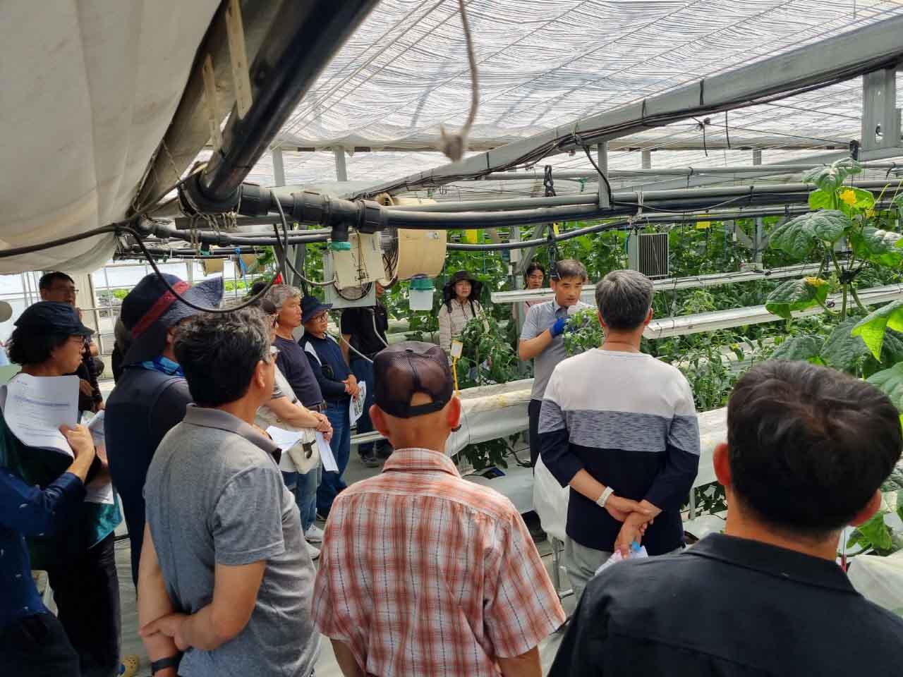 현장 평가회에서 딸기 이모작 작물별(수박, 멜론, 토마토, 오이) 재배기술 및 추진현황, 설치내역 및 비용, 문제점 및 개선방안 등을 공유하는 시간을 가지고, 오이 품종별 전시, 식미평가, 수량평가 등을 진행하였다. 농가들과 실질적인 질문과 답변을 오가며 추진함으로써 참여한 농가로부터 좋은 평가를 받았다.