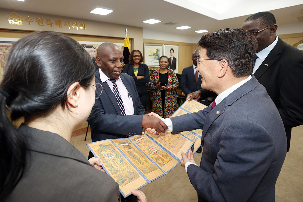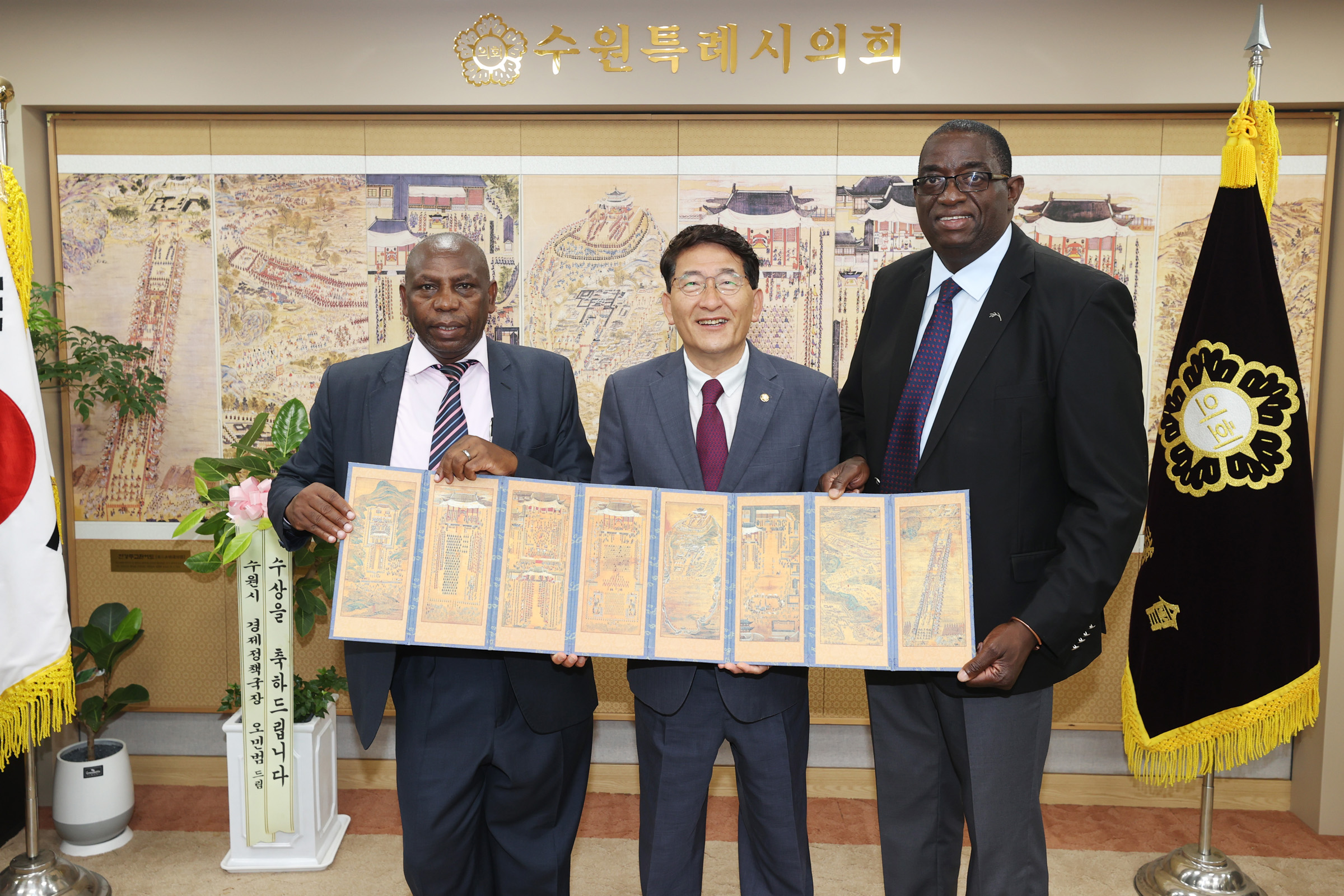 수원특례시의회 김기정 의장은 6월 27일(화) 아프리카 3개국 고위공직자를 시의회로 초대해 공무원 인재개발을 위한 협력관계 구축에 대해 환담했다.