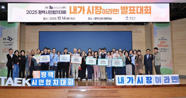평택시(시장 정장선)는 지난 14일 시청 대회의실에서 올해로 6회째를 맞는 `2025 평택시민협치대회 `내가 시장이라면!`` 최종 발표대회를 개최했다.