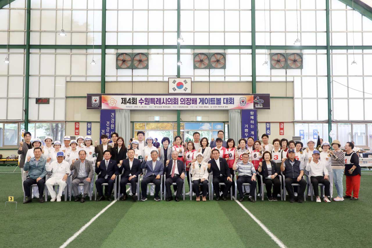 이날 대회는 수원특례시의회 주최, 수원시 게이트볼협회(협회장 이철수) 주관으로 열렸으며, 수원특례시의회 김기정 의장을 비롯한 의원들, 주요 내빈 및 동호회 회원 등 400여 명이 참여했다.