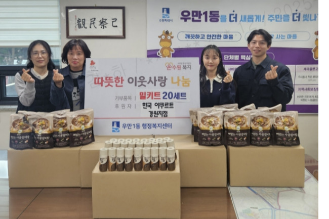 김미라 우만1동장은 “경제적으로 어려운 시기에 따뜻한 마음을 보내주신 한국야쿠르트 경원지점에 진심으로 감사드린다”며 “소중한 정성이 꼭 필요한 가정에 잘 전달될 수 있도록 하겠다”고 감사의 뜻을 전했다.