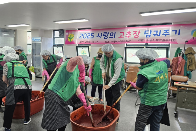 의왕시 새마을부녀회, 고추장 나눔으로 온기 전해 지난 10월 17일 의왕시는 의왕시새마을부녀회와 함께 새마을회관에서‘2025 사랑의 고추장 담궈주기’행사를 열었다.