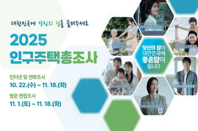 경기도, 11월 18일까지 2025년 인구주택총조사 실시 경기도가 10월 22일부터 11월 18일까지 28일간 인구주택총조사를 실시한다.