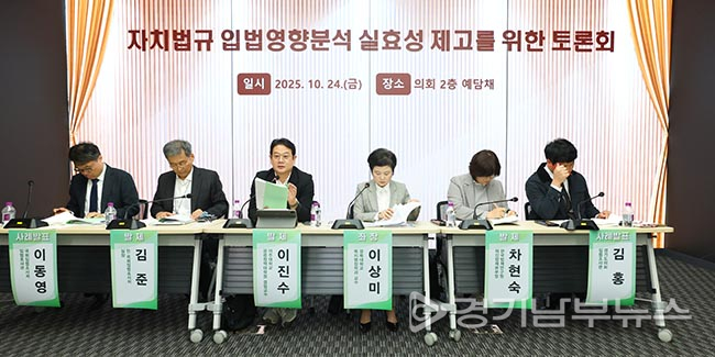경기도의회(의장 김진경)와 제주특별자치도의회(의장 이상봉)는 10월 24일 금요일 오후 2시, 경기도의회 2층 예담채에서 '자치법규 입법영향분석 실효성 제고를 위한 토론회'를 공동 개최했다.