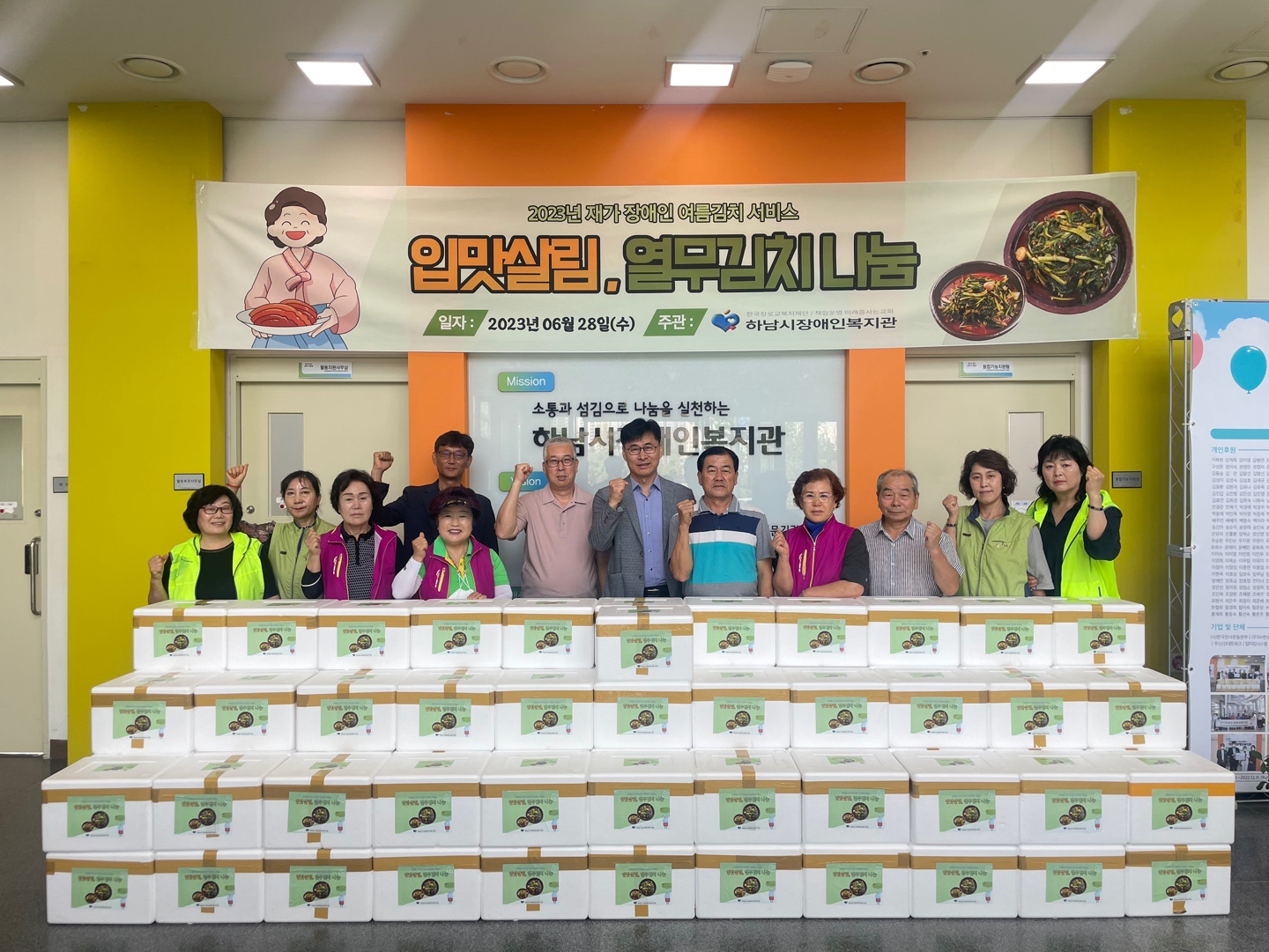본 사업은 재가 장애인 100가정을 대상으로 각 7kg의 열무김치를 자원봉사 6개 단체(한국여성지도자협의회, 대한어머니회, 아이코리아, 미사강변봉사단, 하남시통장단협의회, 하남시 통장단협의회, 서부농협고향주부)와 함께 전달함으로써, 지역사회의 온정을 함께 나누었다.