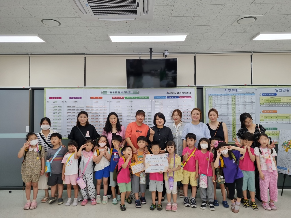 이날 성금은 지난 29일 시립감일한별어린이집 학부모 참여수업 행사로 교사들이 달고나 등 간식과 전통놀이 장난감 등을 만들어 원아들과 함께 시장 놀이를 통해 판매한 수익금과 교사들의 기부금으로 마련하였다.