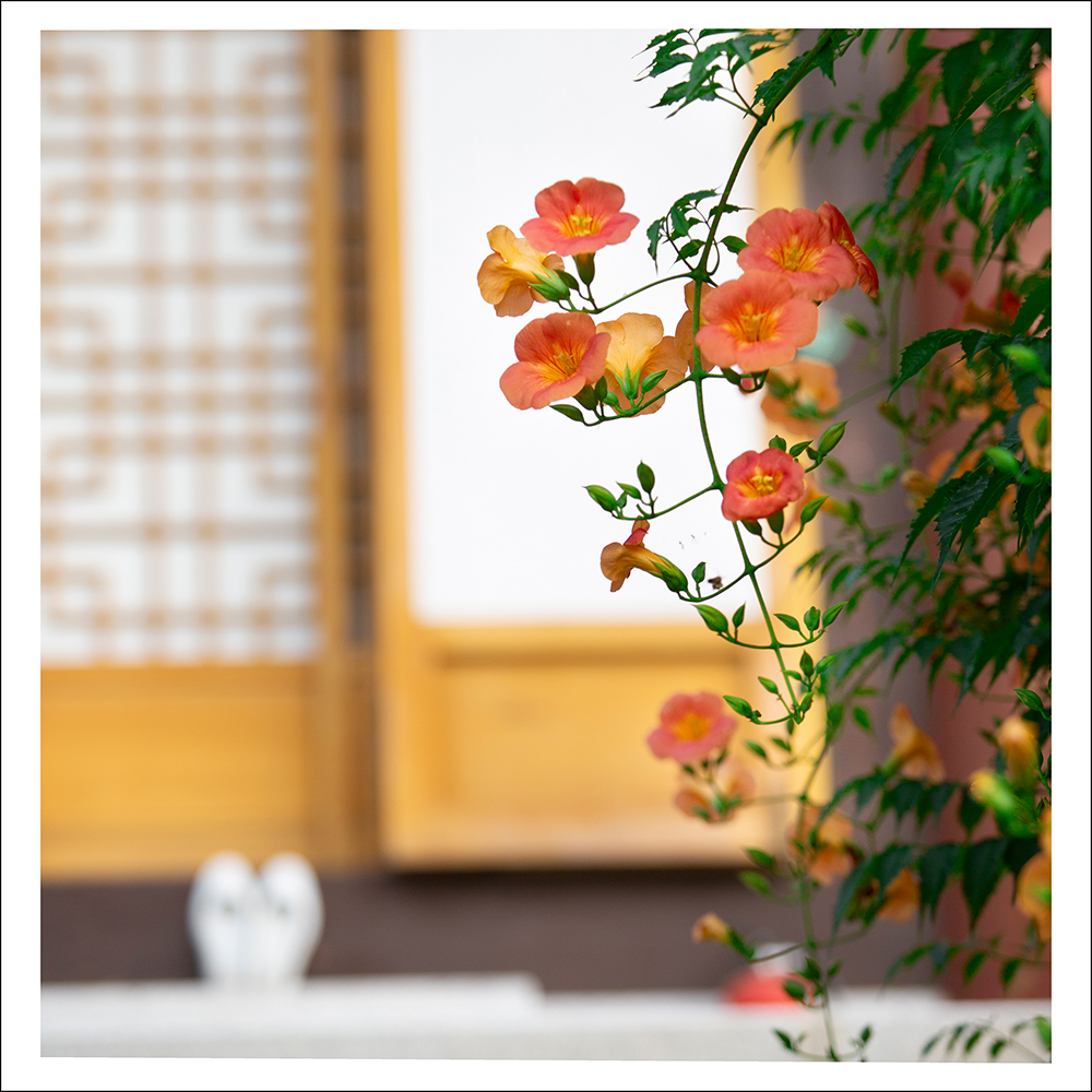 작가의 눈에 비친 능소화는 아련함과 어여쁨을 간직한 채 다소곳한 아씨의 이미지로 설렘을 주는 꽃!