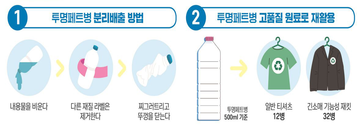 투명페트병은 다른 플라스틱과 다르게 고품질 재활용 원료로 이용되며 올바르게 분리배출한 투명페트병(①내용물 비우기 ②라벨 제거하기 ③찌그러트리고 뚜껑 닫기)을 가지고 오면 1kg에 720원을 현금(계좌이체)으로 보상해주고 폐건전지는 20개당 새건전지 2개, 종이팩 1kg에 화장지 1롤, 소각용 종량제봉투 10L 1장의 장려품으로 보상해 준다.