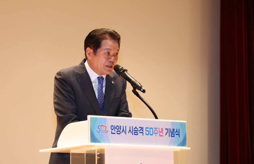 이날 기념식에서는 시 승격 경과보고 및 50년 역사를 담은 기념 동영상 상영에 이어 최대호 안양시장의 기념사, 각계 인사들의 축사가 이어졌다.
