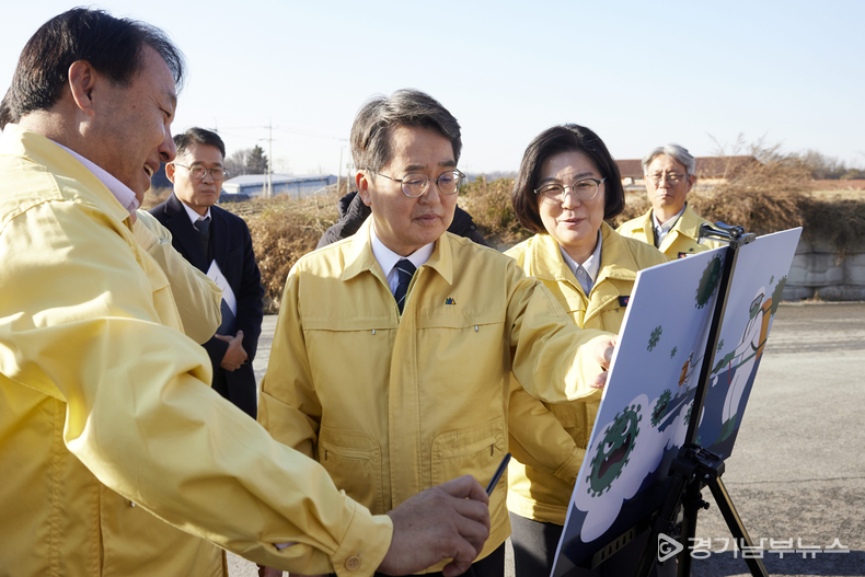 소독시설 점검을 마친 김동연 지사는 28일 하루 동안 현대차그룹 미래 모빌리티 안성 배터리 연구소 투자유치, 안성 동신일반산단 간담회 등 안성 달달버스의 모든 일정을 함께 한 김보라 안성시장, 윤종군 국회의원과 함께 현장에서 즉석 스탠딩 간담회를 갖고 안성시 발전에 대한 의견을 나눴다.