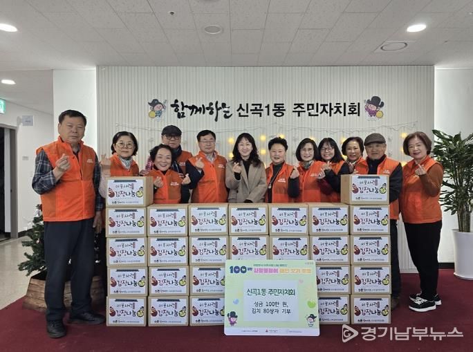 [경기남부뉴스 홍복순 기자] 의정부시 신곡1동주민센터는 12월 1일 신곡1동 주민자치회가 성금 100만 원과 김장김치 80상자를 기탁했다고 밝혔다.