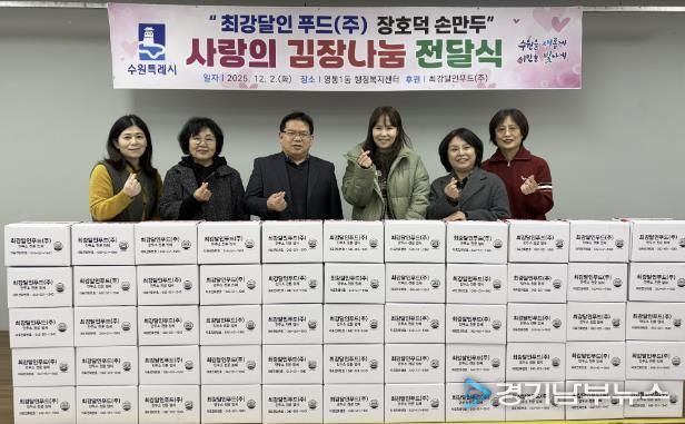 [경기남부뉴스 김정옥 기자] 수원시 영통구 영통1동 행정복지센터는 지난 2일, 최강달인푸드(주) 장호덕 손만두에서 김치 100박스를 기탁했다고 밝혔다.