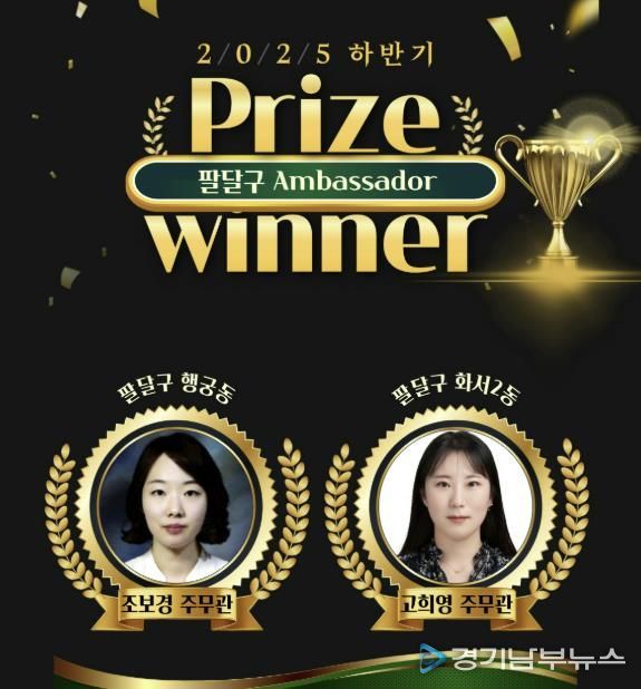 [경기남부뉴스 김정옥 기자] 수원시 팔달구는 ‘2025년 하반기 공직자 Ambassador’를 선정‧발표했다. ‘팔달구 공직자 Ambassador’는 홍보 실적이 우수한 공직자를 개인별로 선정해 직원들의 적극적인 홍보를 독려하고 시·구정 홍보에 대한 관심도를 제고할 방안으로 금년도 첫 시행 중인 팔달구 시책이다.