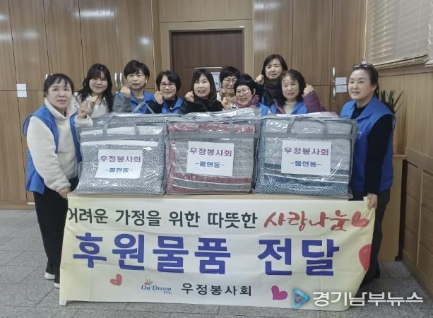 [경기남부뉴스 홍복순 기자] 동두천시 불현동 행정복지센터는 우정봉사회가 12월 2일 겨울맞이 봉사활동의 일환으로 지역 내 취약계층을 위해 극세사 이불 15채를 전달했다고 밝혔다.
