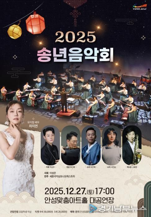 [경기남부뉴스 김혜숙 기자] 안성맞춤아트홀은 오는 27일 토요일 오후 5시, 세종국악심포니오케스트라와 함께하는 '2025 송년음악회'를 개최한다. 이번 공연은 한 해의 마지막을 따뜻하게 채워줄 대규모 송년음악회로, 국악의 전통성과 현대적 감성을 조화롭게 담아낸 프로그램을 통해 관객에게 위로와 희망의 메시지를 전하고자 기획됐다.