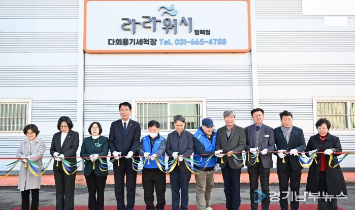 [경기남부뉴스 김혜숙 기자] 사회적협동조합 평택지역자활센터는 지난 11월 28일 평택시 고덕면 문곡리 일원에서 공공 다회용기 세척 시설 ‘라라워시 평택점(ESG 다회용기세척사업단)’ 개소식을 개최했으며, 내외빈과 지역 주민 70여 명이 참석했다고 밝혔다.