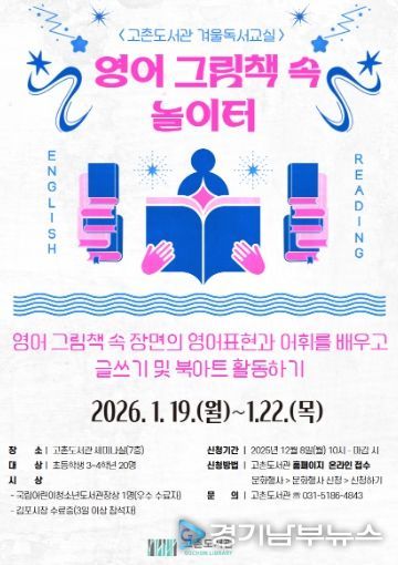 [경기남부뉴스 김혜숙 기자] 김포시 고촌도서관은 오는 2026년 1월 19일부터 1월 22일까지 초등학생 3~4학년을 대상으로 겨울독서교실 '영어 그림책 속 놀이터'를 운영한다.