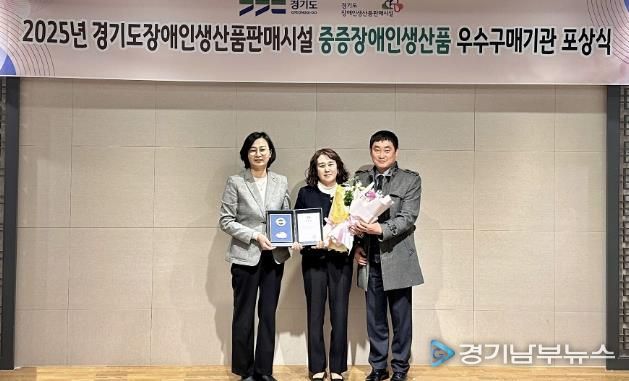 [경기남부뉴스 김혜숙 기자] 시흥도시공사는 지난 11월 28일 경기도로부터 ‘2025년 중증장애인생산품 우수구매기관’로 선정되어 경기도지사 개인 표창을 수상했다. 이번 수상은 정부권장 정책에 따른 의무구매 비율 목표를 초과 달성하며, 공사가 중증장애인생산품 우선구매 촉진에 기여한 공로를 인정받은 결과이다.