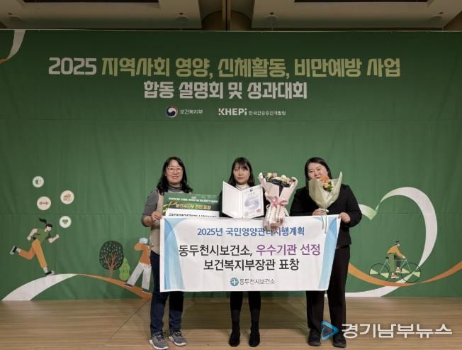 [경기남부뉴스 홍복순 기자] 동두천시보건소는 지난 2일 열린 지역사회 영양·신체활동·비만예방 사업 합동 성과대회에서 ‘2025년 국민영양관리시행계획 평가’ 우수기관으로 선정돼 보건복지부 장관 표창과 포상금 100만 원을 받았다.