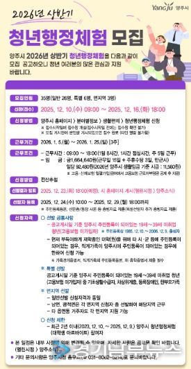 [경기남부뉴스 홍복순 기자] 양주시가 ‘2026년 상반기 청년행정체험’에 참여할 19세 ~ 39세 청년 35명을 오는 16일까지 모집한다.