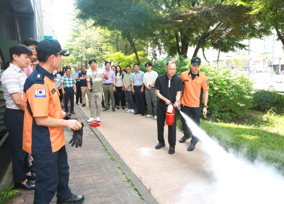 연일 폭염이 기승이다. 이럴 때 작은 불씨, 무심한 안전관리는 큰 재난으로 번질수 있다. 의왕도시공사는 8월 3일, 공사 사옥에서 의왕소방서와 합동으로 임직원 50여 명을 대상으로 소방훈련 및 교육을 실시했다.