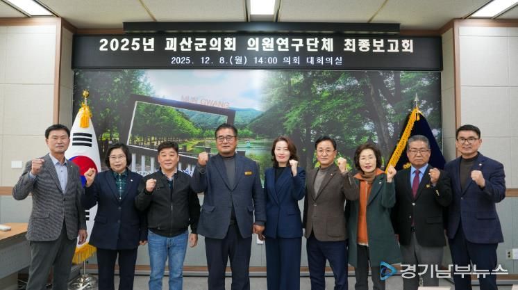 [경기남부뉴스 김혜숙 기자] 괴산군의회는 12월 8일 의회 대회의실에서 2025년 의원연구단체의 최종보고회를 개최하고, 한 해 동안 수행한 연구 활동을 공식적으로 마무리했다.