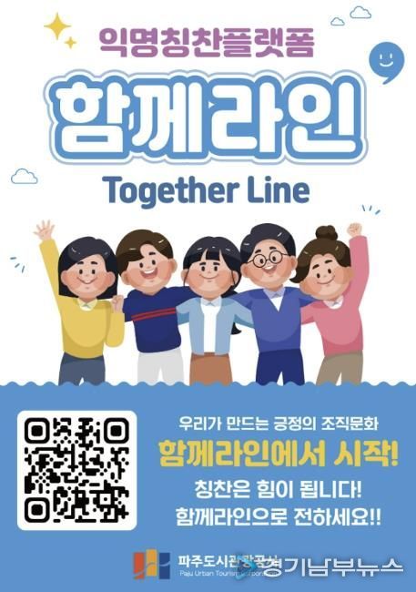 [경기남부뉴스 김혜숙 기자] 파주도시관광공사는 직원과 고객이 함께 참여하는 스마트 익명 칭찬 플랫폼 ‘함께라인(Together Line)’을 12월 초부터 도입했다.