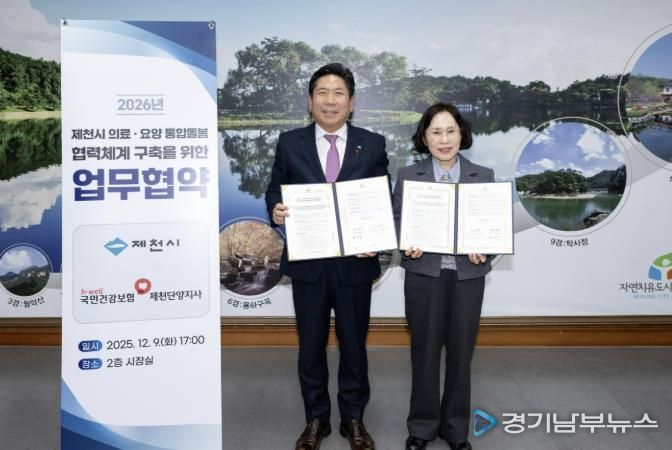 [경기남부뉴스 김혜숙 기자] 제천시는 지난 9일 국민건강보험공단 제천단양지사와 의료요양 통합돌봄사업 업무협약을 체결했다고 밝혔다.