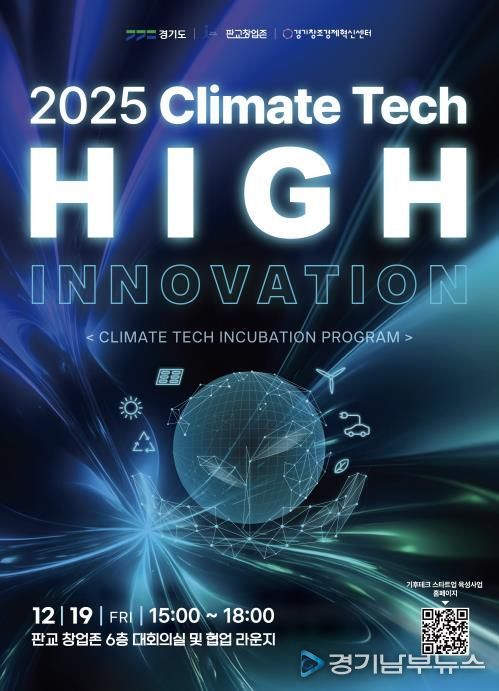 [경기남부뉴스 김혜숙 기자] 2026년 본격 시행되는 기후규제를 앞두고 경기도와 경기창조경제혁신센터가 기후테크 기업과 함께 오는 19일 판교제2테크노밸리기업지원허브에서 간담회·세미나·성과공유회(High innovation)를 함께 개최한다.
