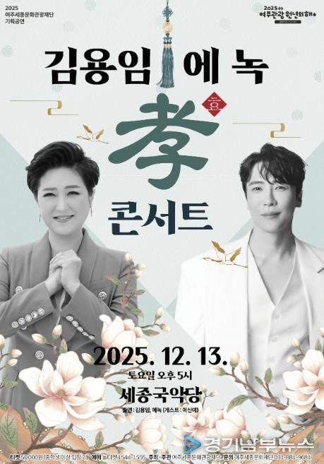 [경기남부뉴스 김혜숙 기자] 여주세종문화관광재단이 오는 12월 13일, 세종국악당에서 '김용임 & 에녹의 효 콘서트'를 선보인다.