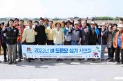 김보라 안성시장은 본격적인 모내기철을 맞아 14일 대덕면 죽리 소재 드문모 모내기 현장을 방문하여 풍작을 기원하고 농업인들을 격려했다. 이날 찾은 모내기 현장에는 안성시장을 포함한 관계 공무원, 김형수 농협중앙회 안성시지부장, 양철규 대덕농협 조합장, 쌀연구회 김지선 회장과 쌀연구회 회원들이 참석했으며 드문모 시연회도 함께 진행했다. 드문모심기는 단위면적당 필요한 육묘상자 수를 절감하는 재배기술로서 ▲육묘상자 당 볍씨 파종량을 280~300g(관행 130~180g) 내외로 밀파하여 모본수를 적게하고 드물게 심는 것으로 ▲이앙 시 재식본수는 3~5개(관행 10~15개), 재식밀도는 3.3㎡ 당 50~60주(관행 70~80주)로 줄여 모판 개수를 관행대비 1/3~1/4로 줄일 수 있도록 개발된 재배방법이다. 안성시는 2022년부터 벼 드문모 재배기술의 파급효과 증대를 위해서 모판 생산 농작업 대행을 추진하는 지역농협을 대상으로 드문모사업을 추진했다. 지난해 드문모 심기 시범사업을 추진한 양철규 대덕농협 조합장은 “드문모 모판을 생산하면서 과밀했던 육묘장 문제를 해결하고, 기존보다 농자재, 인력 등이 30% 이상 감축하여 육묘장 운영에 큰 도움이 되었다”고 말했