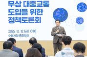 [경기남부뉴스 김정옥 기자] 수원특례시는 12일 시청 중회의실에서 ‘수원시 무상대중교통 도입 정책토론회’를 열고, ‘수원형 무상대중교통’ 도입 정책 방향을 공유했다. 이날 정책토론회는 주제 발표와 종합토론으로 진행됐다. 김채만 경기연구원 선임연구위원이 ‘미래 대중교통 정책방향-쿠리치바 대중교통 사례’, 김숙희 수원시정연구원 선임연구위원이 ‘수원시 무상대중교통 도입 방향’을 주제로 발표했다. 수원시는 사회초년생 청년과 어르신의 교통비 부담을 덜어주기 위해 내년 1월 1일부터 무상대중교통 지원사업을 시작한다. 지원 대상은 19~23세 청년, 70세 이상 어르신이다(신청일 기준). 19~23세 청년이 K-패스 교통카드로 대중교통을 이용하면 한 달에 최대 2만 3100원(연 27만 7200원)을 환급한다. 어르신은 농협에서 우대 교통카드(G-PASS)를 발급받아 사용하면 실제 사용 금액에 대해 분기별 최대 6만 9300원(연 27만 7200원 한도)를 지원한다. 종합토론에는 아주대학교 오영태 교수, 한국교통연구원 박준식 본부장, 경기대학교 김정화 교수, 경기도 광역교통정책과 윤태완 과장이 참