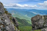 경상남도 밀양시 산내면과 청도군 운문면, 울산광역시 울주군 상북면 등에 높이 1000m 이상 되는 7개의 산군이 유럽의 알프스처럼 아름답다는 의미에서 이름이 붙여진 산이다. 신불산과 취서산 사이의 신불평원 60여만 평과 간월산 밑 간월재의 10만여 평, 고헌산 정상 부근의 20만여 평에 억새군락지도 있다. 신불산과 취서산, 간월산은 경부고속도로 통도사인터체인지에서 삼성전관 뒤쪽 등산로를 따라 산행할 수 있는데, 종주까지 3~4시간이 걸린다. 그중 취서산에서 신불산을 거처 간월산 능선을 타는 코스가 가장 일반적이다. -간월공룡능선 편 23일 새벽 둘째 아들의 배려로 광명역에서 ktx를 타고 울산역에 도착하여 택시를 타고 와서 8시부터 산행을 시작했다. 국제클라이밍센터와 화장실을 지나자마자 우측으로 홍류계곡을 지나 임도 길까지 껄떡거리며 가파르게 산을 올랐다. 간월산 끝까지 가르고, 계속 밧줄이 나오고, 바위를 잡고 오르니 테크쉼터에 도착했다. 3km에 2시간 소요됐다고 트랭글 알람이 떴다. 올라오는 내내 거친 숨이 쉴 새 없이 나고 다리와 허리가 뻐쩍지근 했다. 하지만, 멋진 풍광에 반해 넋을 잃고 바라보며 고통을 잊고 한 발 한 발 내디뎠다. 간월산 밑