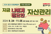 용인특례시(시장 이상일) 평생학습관은 시민들의 올바른 자산관리를 돕는 전문가 특강 ‘나에게 필요한 자산관리’ 참가자를 모집한다고 5일 밝혔다. 이번 특강에선 ‘재테크 트랜드 2020’, ‘충전 수업’ 등의 책을 쓴 충전스쿨 양보석 대표가 강사로 나서 지금 시대의 자산관리, 돈을 불려주는 재무 지식, 경제 지식으로 돈의 흐름 읽기, 펀드 활용법, 신용과 대출, 재무 진단 등을 알려준다. 특강은 용인시 평생학습관 405호에서 이번 달 24일부터 11월 5일까지 매주 화요일 오전 10시부터 12시까지 총 여섯 차례 진행된다. 임시공휴일로 지정된 10월 1일에는 수업을 하지 않는다. 특강에 참여를 희망하는 사람은 용인시 평생학습관 홈페이지(https://lll.yongin.go.kr)에서 신청하면 된다. 선착순 50명을 모집하며 수업료는 무료다. 시 관계자는 “나날이 중요성이 높아지고 있는 자산관리에 대해 배우고 관련 정보를 습득할 좋은 기회가 될 이번 강의에 많은 시민의 참여를 기대한다”고 말했다.