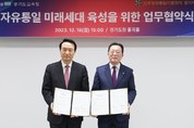 도교육청-민주평통 미래세대 통일 교육 활성화 업무협약 체결 경기도교육청는 민주평화통일자문회의 경기지역회의가 18일 경기도청에서 업무협약을 맺고 미래세대의 통일 교육에 적극 협력해 나가기로 했다. 협약식에는 임 교육감과 홍승표 경기부의장을 비롯 양 기관의 주요 관계자와 민주평통 경기지역 31개 시군 협의회장이 참석해 협약의 의미를 새기고 협력의 새 출발을 함께 축하했다. 주요 협약 내용은 교육과정 연계 통일 프로그램 상호 협력, 청소년 통일 문화 관심 제고를 위한 체험 및 봉사 프로그램 운영 협력, 학교 통일 문화 진흥과 교원 역량 강화 운영 지원 등이다. 양 기관은 이번 협약으로 통일 콘텐츠 제공 및 통일 교육 프로그램 운영에 필요한 인적‧물적 분야에 서로 협력하고 지원해 나가기로 약속했다. 이에 따라 도 교육청은 민주평통이 갖춘 다양한 지역 네트워크를 활용해 도내 학교 구성원의 통일 교육 확대에 힘쓰는 등 통일 문화 활성화를 위해 노력할 예정이다. 홍승표 부의장은 “경기도교육청과 민주평통 경기지회가 협업해 자유민주주의체제에 대한 정체성 확립, 평화통일에 대한 확고한 의지를 다질 수 있는 계기가 되길 기대하며 열심히 노력하겠다”고 말했다. 임 교육감은 인사말