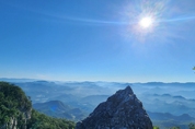 도락산은 충북 단양군에 위치한 해발 964m의 산으로, 소백산맥에 속한다. 기암괴석과 울창한 숲이 어우러진 풍경이 아름다워 '충북의 금강산'이라 불린다. 등산로가 다양해 초보자부터 숙련자까지 즐길 수 있으며, 정상에서는 단양팔경의 절경을 한눈에 감상할 수 있다. 소백산 등산을 마치고 차로 이동해 11시 15분에 도락산 상선암 주차장에 도착했다. 등산 준비와 간단한 운동을 하고 11시 28분에 도락산 등산을 시작한다. 23년 4월에 오고 오늘 다시 찾은 도락산! 험준하고 난이도도 높고 체력 소모가 높은 산인데 그걸 잊고 있다 등산하는 초반에 생각이 났다. 소백산 날씨와는 정반대인 도락산 날씨는 강렬한 햇살에 푹푹 찌는 더위에 바람 한 점 없다. 1km 정도 가니 산바람이 시원하게 분다. 이곳에서 여러 명의 등산객을 보며 대화를 나눈다. 그들은 덥다며 더 이상 못가겠다 하며 하산을 하고 난 헉헉거리며 계속 오른다. 나도 너무 더워 부채질과 그늘에서 잠시 쉬어 가기를 반복했다. 제봉에 도착하고 형봉을 지나 도락산 삼거리에 와 정상에 갔다 다시 여기로 오니 등산 가방과 스틱 1개를 놔 두고 앞으로 나아간다. 드디어 신선봉까지 왔다. 23년 4월에 왔을 때 신성봉에서