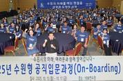수원특례시는 13일부터 17일까지 4박 5일간 신규공직자를 대상으로 `2025 수원형 공직입문과정(On-Boarding)`을 운영했다. 수원특례시(시장 이재준)는 13일부터 17일까지 4박 5일간 신규공직자를 대상으로 `2025 수원형 공직입문과정(On-Boarding)`을 운영했다. 공직자입문과정에는 2025년도 수원시 지방공무원 공개채용 시험에 합격한 신규 공직자 161명이 참여했다. 지난해까지 2박3일 일정으로 운영하던 과정을 4박 5일로 확대·개편해 더 체계적이고 심층적인 교육과정으로 구성했다. 수원형 공직입문과정(On-Boarding)은 단순한 강의 위주 교육이 아닌, 공직 가치·직무 역량·조직 문화·소통 능력을 균형 있게 강화하는 체험 중심의 `수원형 교육 모듈`이다. 신규 공직자들이 수원시의 정체성과 행정철학을 깊이 이해하고, 시민과 함께 호흡하는 공직자로 성장할 수 있도록 ▲공직 가치 내재화 ▲수원 역사와 문화의 이해 ▲새빛정책 아이디어 토론&발표회 ▲수원시 핵심 가치·비전 공유 팀빌딩 ▲공직 가치 바로 알기 봉사활동 등 강의·프로그램을 진행했다. 첫날은 공직자로서 기본