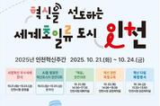인천광역시(시장 유정복)는 혁신 행정의 성과를 확산하고 공직자의 혁신역량을 강화하기 위해 오는 10월 21일부터 24일까지 `2025 인천 혁신주간`을 개최한다고 밝혔다. 세계 초일류도시 인천을 향한 혁신의 한 주, `2025년 인천 혁신주간` 개막 이번 혁신주간은 `혁신을 선도하는 세계 초일류도시 인천`을 주제로 인천시가 추진해 온 주요 혁신 성과를 시민과 공유하고, 혁신 교육, 인공지능(AI) 활용 경진대회 등 다양한 프로그램을 통해 혁신 행정 문화를 확산하는 자리로 마련됐다. 혁신주간 기간 동안 시청 중앙홀에서는 `2025년 인천광역시 시정혁신 전시전`이 열린다. 전시는 ▲시민행복 ▲균형발전 ▲초일류도시 ▲시민소통 ▲창조행정 등 5개 테마존으로 구성되며 시의 혁신 정책 33개가 소개된다. 특히 시민행복존에서는 아이플러스(i+) 드림 6종과 인천 아이(i) 바다패스 등 `아이(i) 정책`을 인공지능(AI)으로 제작한 전시물로 선보여 시민들이 한눈에 정책을 이해할 수 있도록 했다. 또한 전시장에 마련된 정보무늬(QR코드)를 통해 각 정책의 세부 내용을 스마트폰으로 바로 확인할 수 있다. 혁신주간 첫날인 21일에는 인천시 대표 정책연구 활동인 `혜윰`의 연구