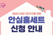 성남시는 여성 1인 가구 100명에 안심홈세트(4~5종)를 지원한다고 밝혔다. 혼자 사는 여성이나 엄마 혼자 아이를 키우는 가구의 안전한 주거생활을 지원하려는 사업이다. 안심홈세트는 현관문 이중잠금장치, 창문 잠금장치, 문 열림 감지기 등 3개를 공통 지원 물품으로 한다. 여기에 대상자 선택에 따라 2개 물품(A세트) 또는 1개 물품(B세트)을 추가 지원한다. A세트는 집 문밖 상황을 스마트폰으로 볼 수 있는 ‘스마트 도어 벨’, 외출 중에 집 안의 상황을 볼 수 있는 ‘스마트 홈캠’을 추가 지원 물품으로 구성했다. B세트는 스마트 기기 사용이 어려운 중·장년층과 노년층을 배려해 비디오폰을 추가 구성 물품으로 했다. 이를 위해 시는 2940만원의 사업비를 투입한다. 지원 대상은 성남시에 사는 여성 1인 가구 또는 한부모 모자가정이면서 전·월세 보증금 3억원(기존 2억원) 이하 주택 거주자다. 시는 선착순으로 대상자의 신청을 받은 뒤 주거 형태, 전세보증금액, 성남시 거주기간 등을 고려해 지원 가구를 선정한다. 지원 희망자는 성남시 홈페이지(시정소식→새소식) 또는 경기민원24홈페이지(여성 1인가구 안심패키지 지원사업)를 통해서 신청서와 임대차계약서 사본을 첨부