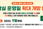 의왕시, 중앙·내손도서관 9월부터 휴관일 주 1회에서 월 1회로 변경 의왕시 중앙·내손도서관은 도서관 이용 활성화 및 이용자 편의 증진을 위해 오는 9월부터 열람실 개방일을 확대 운영한다고 밝혔다. 시는 코로나19로 위축됐던 관내 도서관 이용률을 증가시키고, 시민들에게 평생학습과 지식 함양의 공간을 제공하고자 매월 4~5회 실시하던 휴관일을 월 1회로 축소해 열람실을 개방한다. 열람실은 아침 7시부터 밤 11시까지 운영되며, 휴관일은 중앙도서관은 매월 셋째 월요일, 내손도서관은 매월 셋째 금요일로, 노후시설 유지보수 공사 등을 위해 월 1회 휴관한다. 중앙도서관의 담당자 의왕시 평생교육원 도서관정책과장은 책 읽기 좋은 쾌적한 도서관, 온가족이 행복한 쉼터도서관, 꿈과 미래를 실현하는 공작소로 새롭게 단장하였으며, 시민들이 도서관에서 다양한 정보와 문화를 향유하며, 함께 성장하고 동행할 수 있도록 노력하고 있다고 인사말을 건넸다. 또한 내손도서관의 담당자 도서관운영과장은 이용자 중심의 시설개선과 지식정보화 시대에 걸맞는 도서관 운영으로 시민 누구나 즐겨 찾을 수 있는 생활 친화적 독서 문화공간을 만들어 가고 있으며, 앞으로 더욱 발전하는 도서관이 되도록 노력하