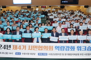 이재식 의장 및 시민협의회, 화성찬성단체 등 관계자 400여 명 수원 특례시의회(의장 이재식)가 30일(월) 수원시청 대강당에서 열린 수원군공항이전 및 경기통합국제공항 추진을 위한 제4기 시민협의회 워크숍에 참석했다. 이날 워크숍에서는 수원시의회 이재식 의장, 김정렬 부의장, 김미경 의원, 김소진 의원, 유재광 의원, 윤경선 의원, 이대선 의원, 장정희 의원, 조미옥 의원, 채명기 의원을 비롯한 내빈과 시민협의회, 화성찬성단체 등 관계자 400여 명이 참석하여 다양한 의견을 공유했다. 제4기 시민협의회 워크숍은▲감사패 및 임명장 전달▲지난 9년간의 여정 영상▲결의대회▲전문가 초청 강연 등의 순서로 진행되었다. 이재식 의장은 “시민협의회는 지난 9년간 누군가의 꿈이 아닌 모두의 꿈이 실현될 수 있도록 헌신적인 노력을 기울여 주셨다”며 “앞으로도 협의회의 활동이 성공적으로 추진되길 바라며, 시민 여러분과 함께하는 이 논의의 장이 지역 발전의 밑거름이 되기를 희망한다”고 밝혔다.