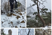 [경기남부뉴스 김정옥 기자] 용화산은 강원도 화천에 위치한 해발 878m의 산으로, 새남바위와 기암능선이 어우러진 경관이 뛰어나다. 비교적 짧지만 경사가 있어 산행의 재미를 준다. 오봉산은 춘천과 화천 경계에 자리한 해발 779m의 산으로, 다섯 개 봉우리와 암릉 구간이 특징이다. 촛대바위와 소양강 조망이 특히 아름다워 사계절 산행지로 사랑받고 있다. 강원도 화천의 3.2일 날씨는 흐림과 비, 눈이 섞여 내리는 습설이 예상되었다. 갈까?, 말까?를 고민하다 산악회버스를 타고 용화산에 도착한다. 큰고개주차장 내리막 구간에서 사고가 있어 1.5km 밑 지점에서 통제를 하고 있어 이곳부터 아스팔트 길을 따라 큰고개까지 고도를 서서히 올리니 비가 눈으로 바뀌고 내리는 눈의 양도 점점 많아지고, 바람도 세진다. 큰고개에서 새남바위를 오르니 온 세상이 눈발에 하얀 세상이 펼쳐지고, 용화산(878m) 정상에 도착하여 인증하고, 배후령고개로 내려가 오봉산1~5봉을 경유해 청평국민여가캠핑주차장까지 가려는 계획이 변경이 되고 만다. 용화산 정상에서 배후령으로 내려가는 초입에 ‘접근금지’ 통제 띠가 처 있었다. 할 수 없이 다시 원점회귀를 하여 버스로 배치고개로 이동한다. ▮큰