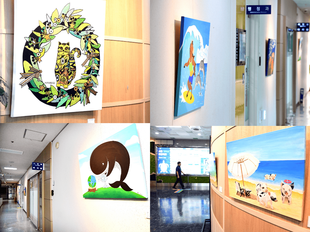 시흥시청 로비에서 특별한 전시회가 열렸다. 시흥시는 발달장애인 문화활동 지원 비영리단체인 ‘아트림’과 함께 청사 1층과 2층에 발달장애인 작가 작품을 전시한다.