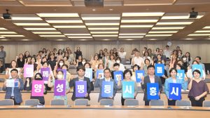 참가자들은 다 함께 올해 양성평등주간 주제인 ‘함께 일하고 함께 돌보는 양성평등 시흥시’ 응원 팻말 들고 구호를 외치며, 양성평등에 대한 실천 의지를 다졌다.